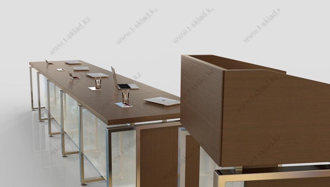 Стол и трибуна могут комплектоваться кабель каналами с крышками или системами встроенных электрических розеток и информационных разъемов.