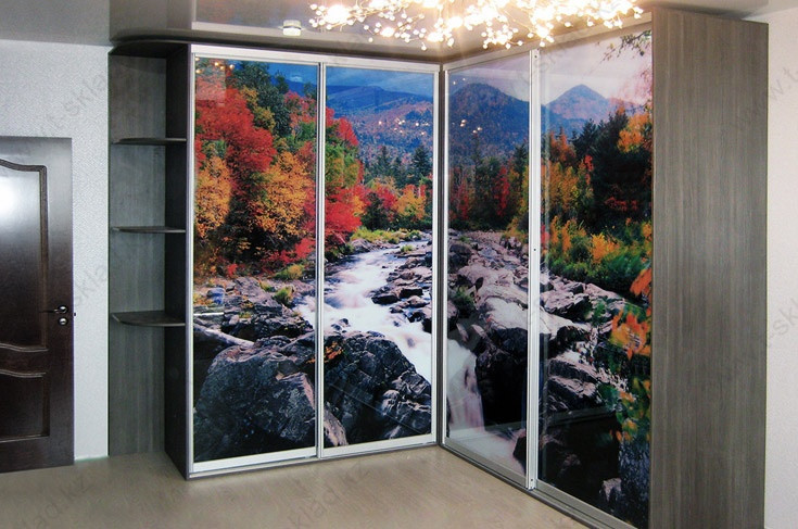 И многое другое. При этом изображение может быть еще и тематическим, с учетом назначения комнаты. Так, для гостиной хороший выбор – это леса, океаны, озера, поляны с цветами и другие природные красоты. А вот для детской комнаты можно выбрать рисунки героев мультфильмов, животных и прочее. Вариантов масса. Также стоит отметить и конструкционные особенности. Имеет смысл заказать шкаф-купе угловой уже по следующим отличиям: